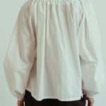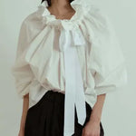 A study in dramatic volume and traditional motif, the Eloise Blouse reimagines a classic pattern through a bold, modern lens. The oversized silhouette and intricate ruff collar create a captivating play of proportion, offering an evocative statement piece for the avant-garde wardrobe.