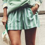Capturing the effortless vitality of a Mediterranean summer, the Capri Short balances a playful graphic sensibility with a refined, airy silhouette. The clean vertical stripes and relaxed proportions offer a sophisticated ease, grounding curated getaway ensembles with a sense of modern, sun-drenched spirit.
