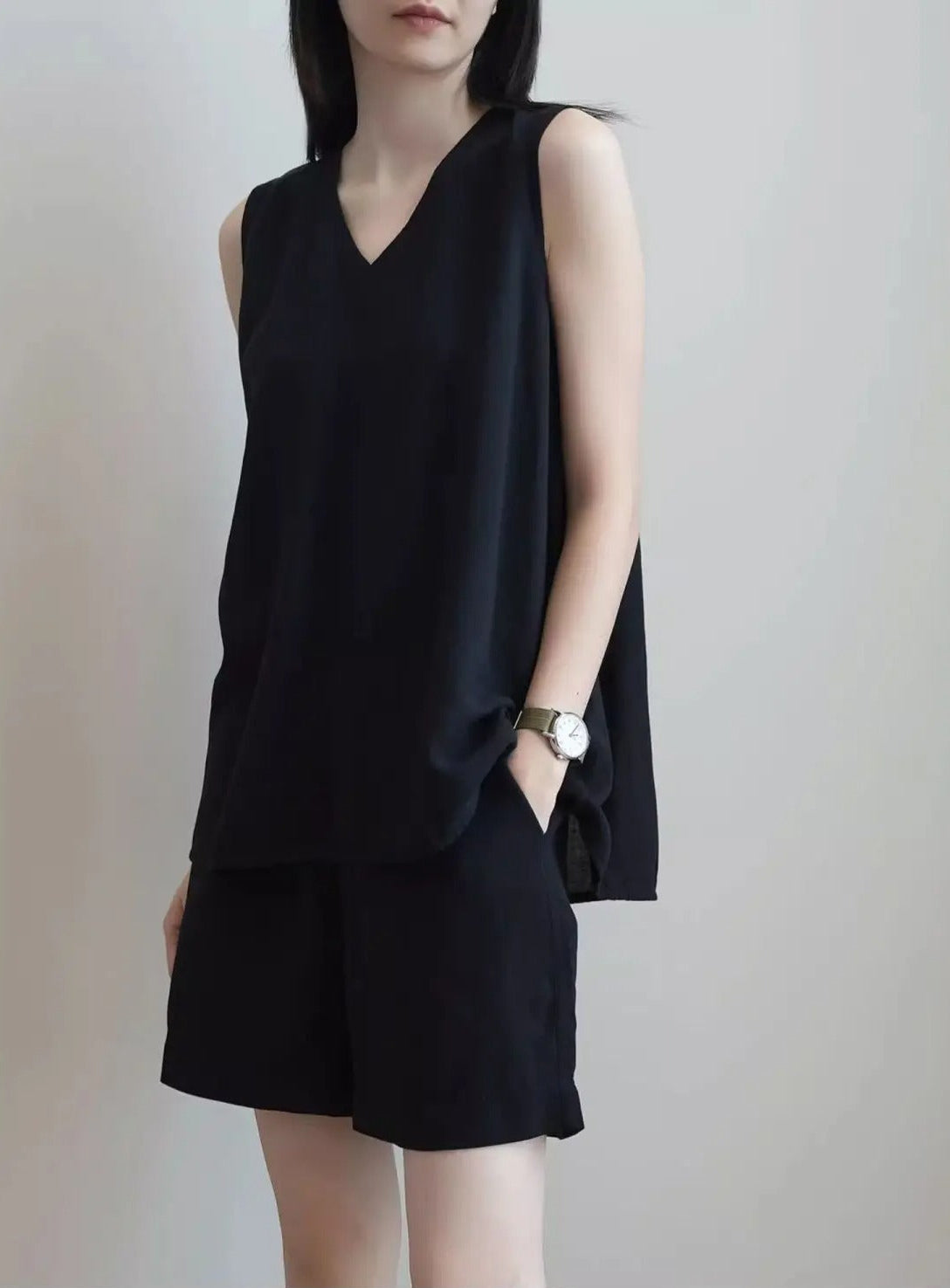 • V-neck sleeveless tunic shell