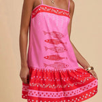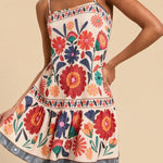 Capturing the essence of sun-drenched coastal escapes, the Valencia Sun Dress harmonizes a relaxed silhouette with vibrant botanical artistry. The tiered design offers a sense of rhythmic movement, creating an air of effortless grace for elevated leisure.