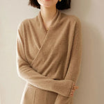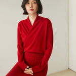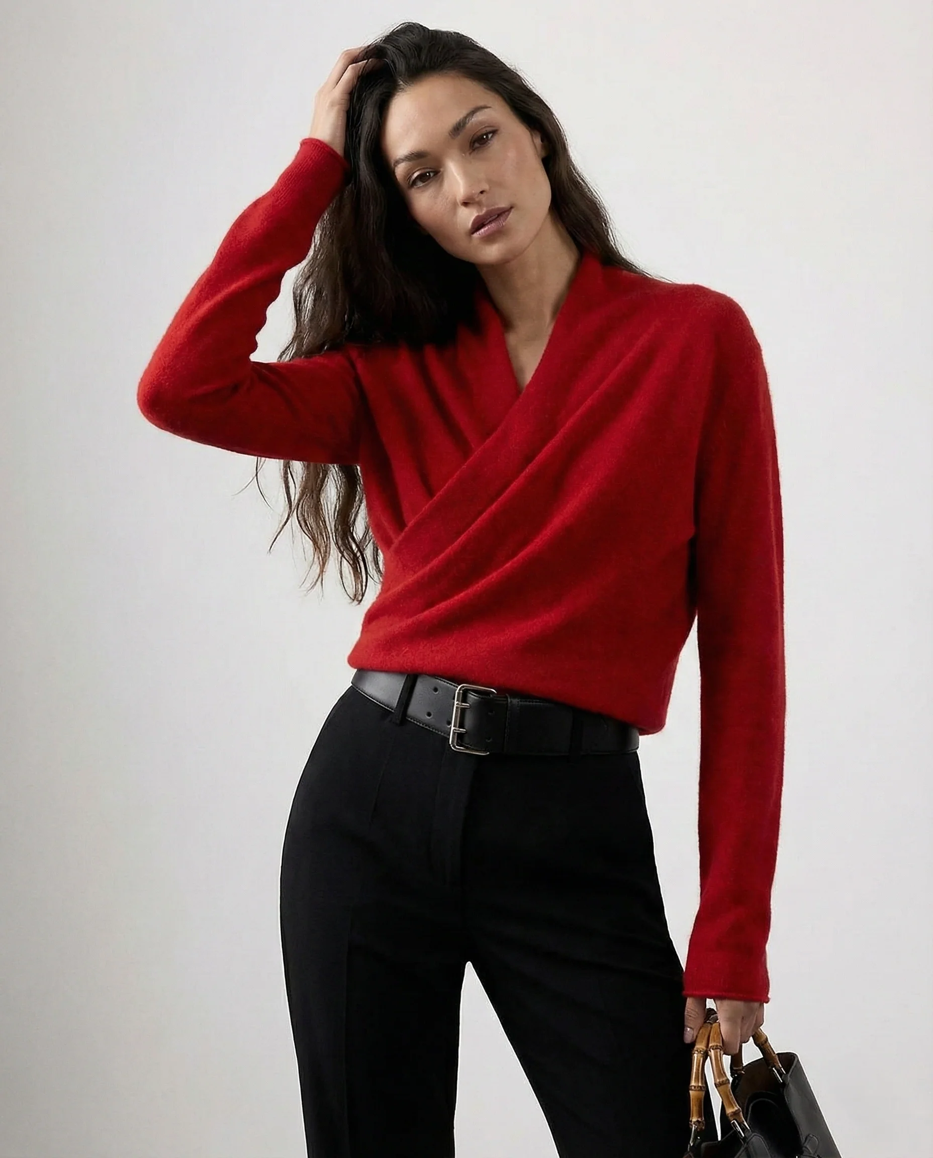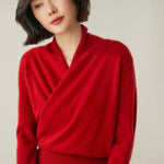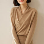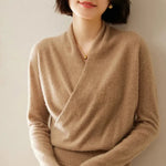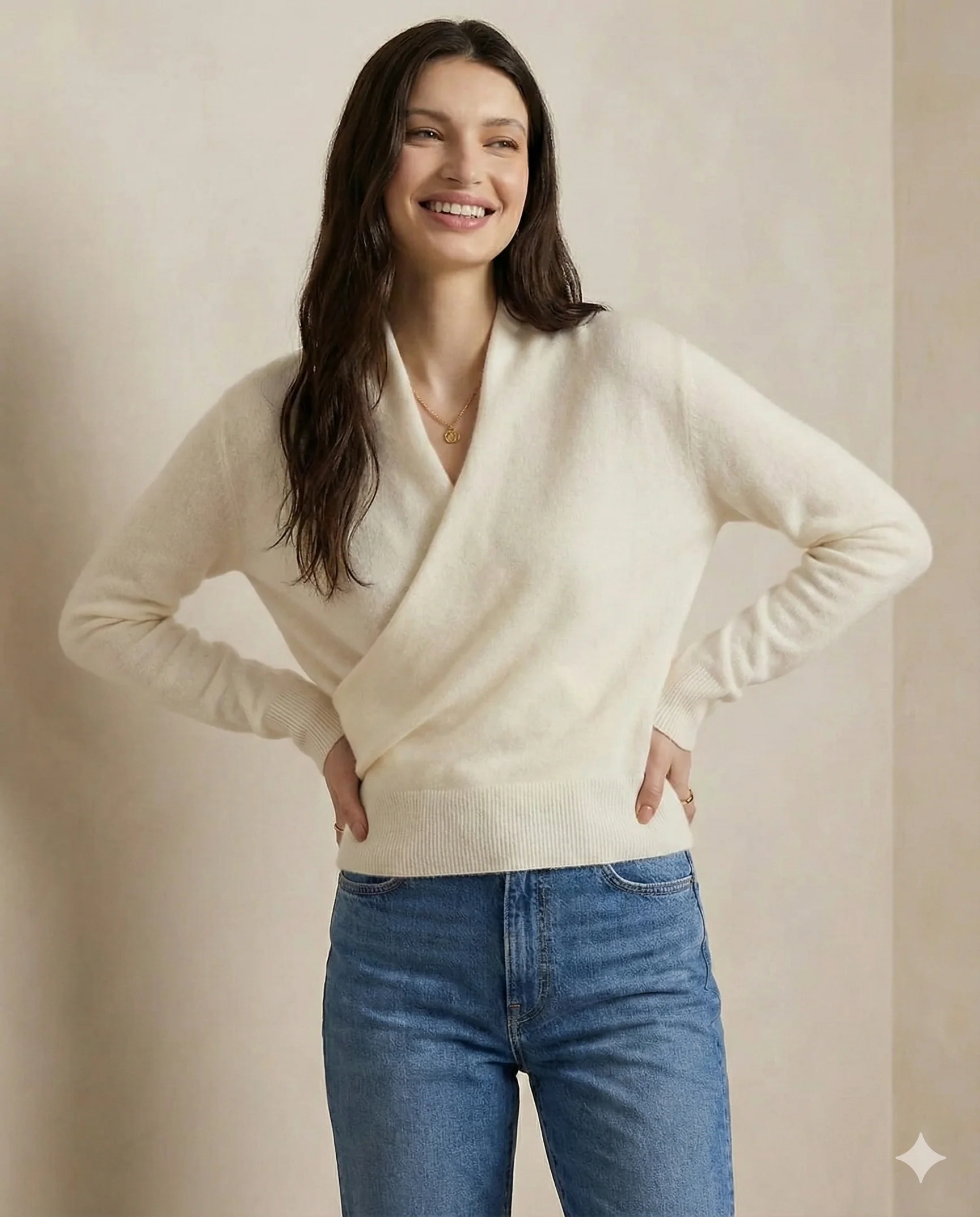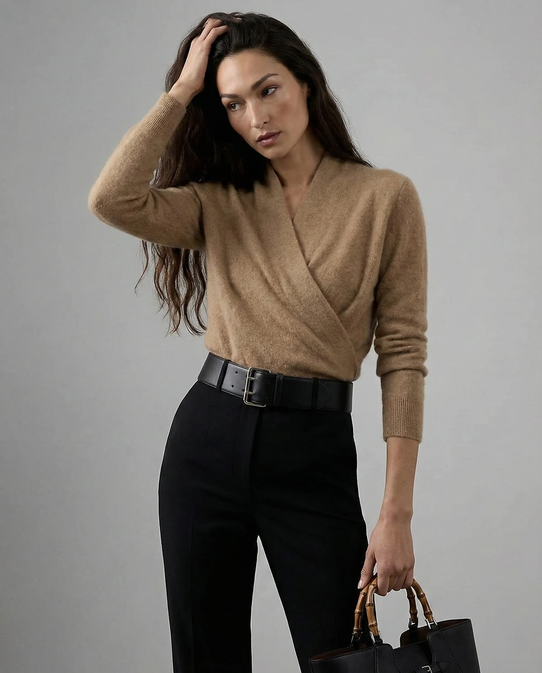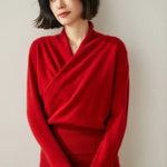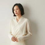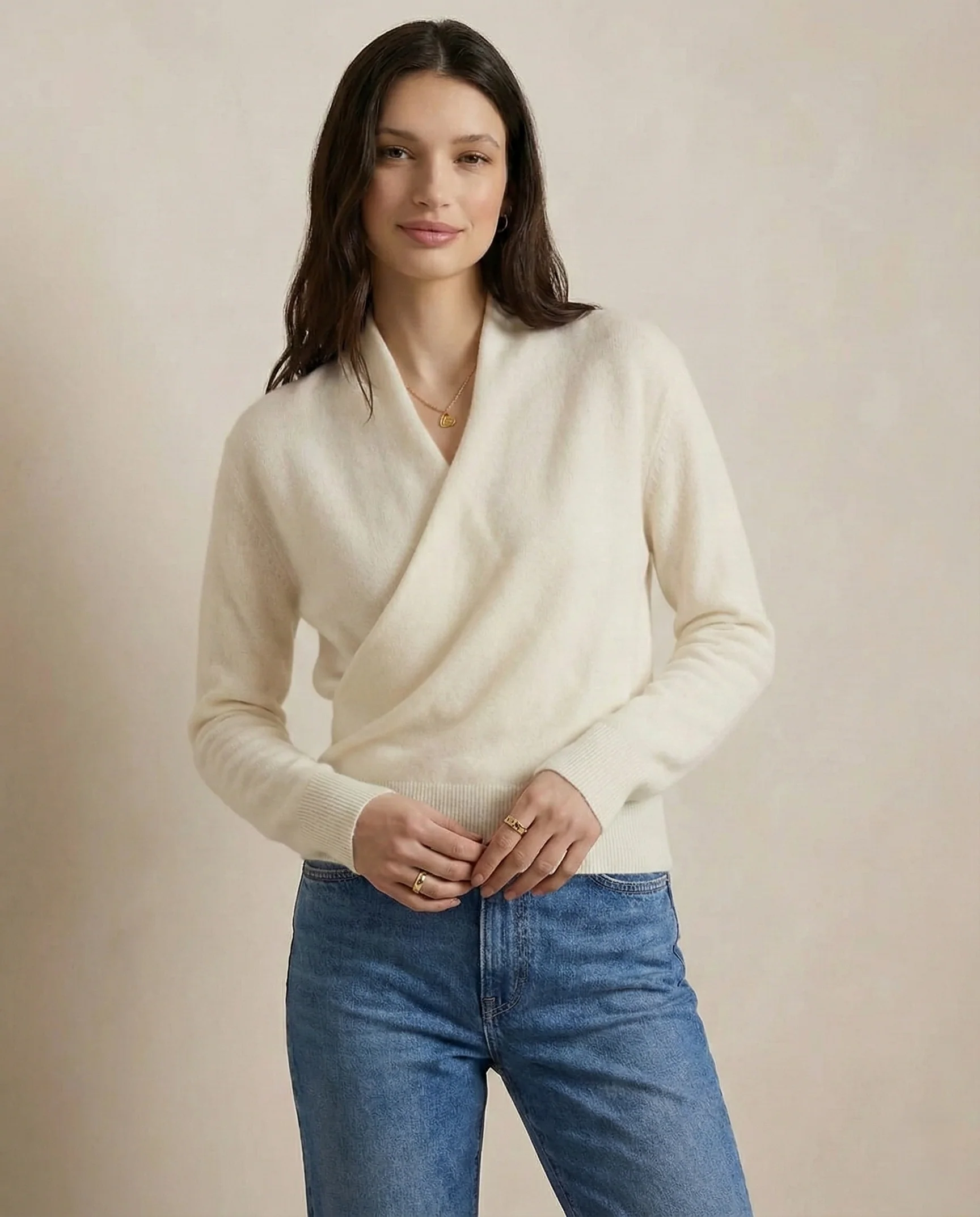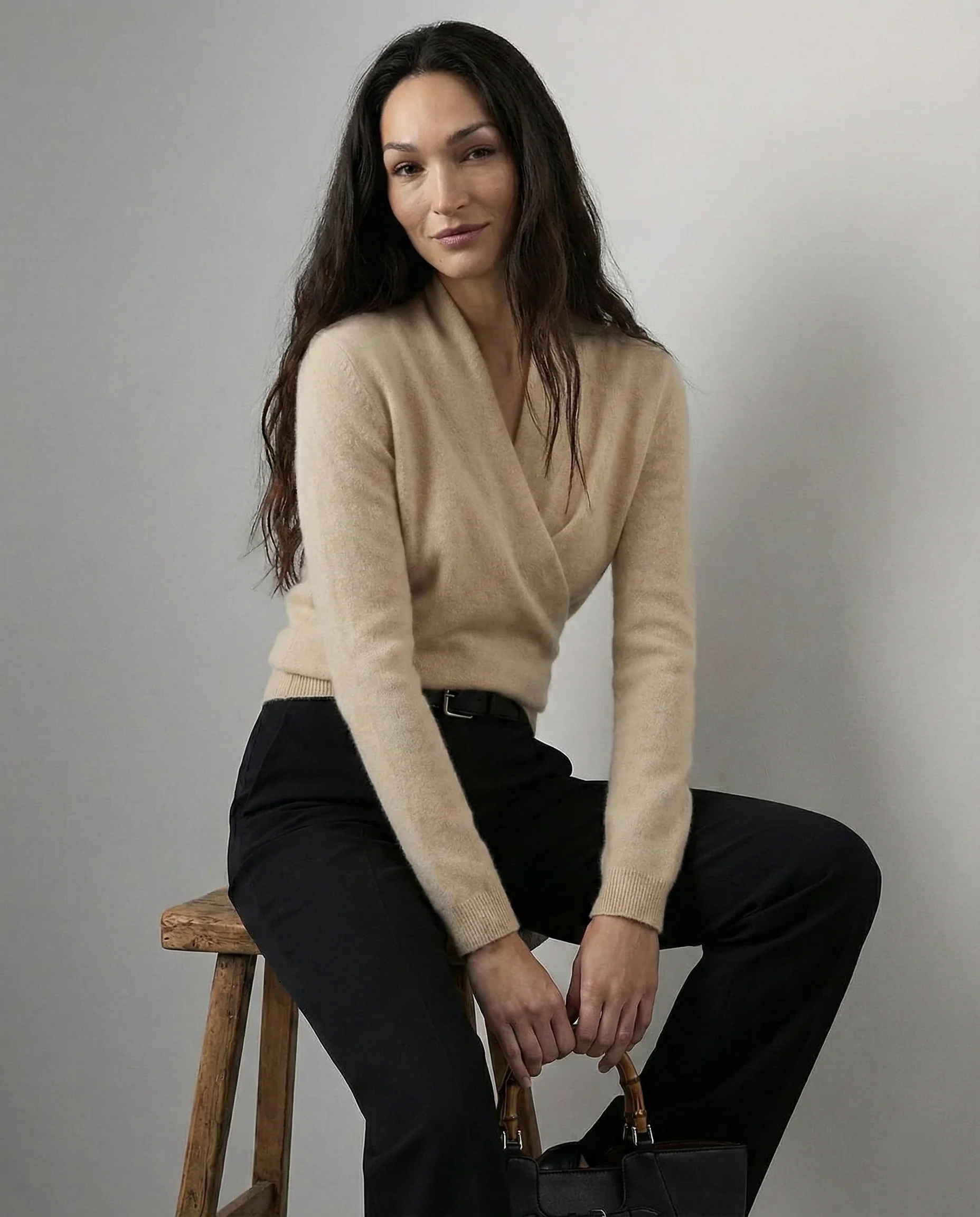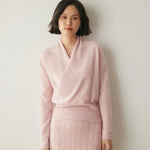 Offering a poetic exploration of soft geometry and fluid texture, the Calliope Sweater reimagines luxury knitwear through a lens of quiet romanticism. The elegant crossover front creates a rhythmic, architectural drape that contours the form, grounding seasonal ensembles with a spirit of effortless, ethereal poise.